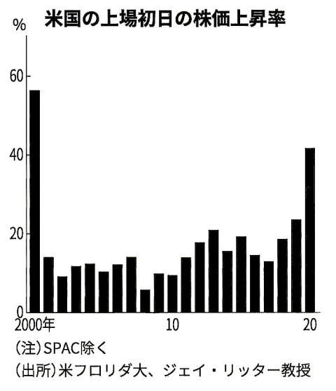 ◆新株公開、買い手を民主化、米ロビンフッド、次の一手 売買手数料の無料化で米株式市場の風景を変えた米スマホ証券のロビンフッド・マーケッツ。次の目標に掲げるのが「新規株式公開(IPO)の民主化」だ。1日に提出した上場目論見書で、今夏ともされるIPO時に自社株の20〜35%を顧客に割り当てると明らかにした。個人投資家は、ロビンフッドがアプリ上に新設した「IPOアクセス」を通じて公募価格で株式を購入できる。同社は他の上場銘柄も取り扱う方針だ。引受証券から分けてもらったIPO株を顧客に販売し、これまで機関投資家などプロに限定されたIPOを一般の個人に開放する。 新型コロナウイルス禍で急成長したロビンフッドの稼働口座数は1800万に達する。潜在的な資金提供力は大きい。IPOの民主化を進めるのはロビンフッドだけではない。オンライン融資の米ソーシャル・ファイナンス(SOF・∵ソーファイ)は3月、同社のアプリでIPO株を個人に割り当てると発表した。IPO株を引き受けて販売する。「メイン・ストリート(庶民層)がこれまでになかった手法でアクセスできるようになる」。アンソニー・ノト最高経営責任者(CEO)は米CNBCでこう語った。同氏はゴールドマン・サックス時代、ツイッターを含む約50社の上場を手掛けた。 *プロ独占崩す 米国のIPOはこれまで、上場企業とウォール街の主幹事証券、機関投資家の闇で完結していた。プロの分厚い投資家層から十分な資金を集められるのに加え、「個人を対象にすればコストが膨大になった」(ノト氏)ためだ。テクノロジーの進化と個人投資家の裾野拡大で、こうした前提は変わりつつある。企業側も個人マネーを取り込もうとしている。4月に直接上場した暗号資産(仮想通貨)交換所大事のコインベース・グローバルは、上場前に鋭明会を開いた。オンライン掲示板「レディット」で個人から質問を募り、アームストロングCEOが動画共有サイト「ユーチューブ」で回答した。 個人の関心が高まる背景に上場直後の株高がある。フロリダ大学のジェイ・リッター教授によると、上場初日の株価上昇率は1980年から2020年までの平均で18・4%。2020年は翌6%(特別買収目的会社=SPACを通じた上場を除く)に達し、IT(情報技術)バブル時の2000年以来の水準になった。IPOに参入できない個人にとって、大きな「機会損失」に映る。実際、初値が高騰する事例も相次いだ。2020年12月上場のドアダッシュは78%高、エアピーアンドピーは2倍超になった。IPO株を割り当てられなかった個人の買いが上場後に殺到したためだ。両社の上場主幹事を務めたゴールドマンのデービッド・ソロモンCEOが「(市場には)陶酔がある」と指摘したほどだ。 *懐疑的な声も 民主化には懐疑的な声もある。長年、IPO市場をみてきたリッター教授は「機関投資家が欲しがらない銘柄を個人に回すような仕組みになるリスクがある」と警告する。分析力でプロに見劣りする個人がIPO銘柄に殺到すれば、発行市場でもマネーゲームの対象になる「ミーム株」現象が広がる可能性がある。米証券取引委員会(SEC)で委員を務めた米ニューヨーク大学のロバート・ジャクソン教授は「IPO銘柄は上場初日とその後の数日間は高騰しても、直近をみると長期的なパフォーマンスはそれほどではない」と指摘。 ロビンフッドなどには、IPO銘柄へ投資するリスクを伝え、より分散の効いたポートフォリオを推奨するよう求める。ロビンアッドが進めた「投資の民主化」は、熱狂的な売買による株価乱高下という副産物をもたらした。IPOの民主化が狙い通りの成果を上げるのか。IPOに伴う売買を個人が主導する日本では、ムードに左石されやすい個人によって初値が跳ね上がりやすい問題もある。過熱を増幅するリスクもはらんでいる。